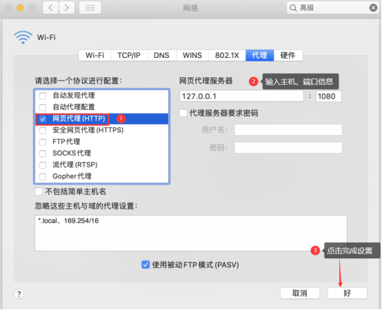 点击“代理”→选择“网页代理(HTTP)”→输入主机、端口信息→点击 “好”,完成设置